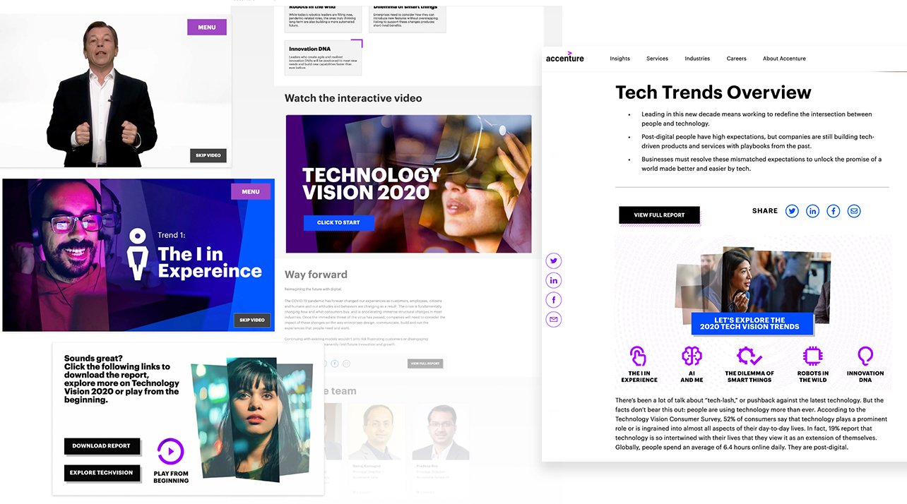 One of the most creatively exciting projects I've worked on was an interactive video experience for Accenture's TechVision 2020. The brief started with a pre-recorded presentation by Marc Carrel-Billiard, Accenture's Global Technology R&D Lead, exploring the tech clash shaping the post-digital world.