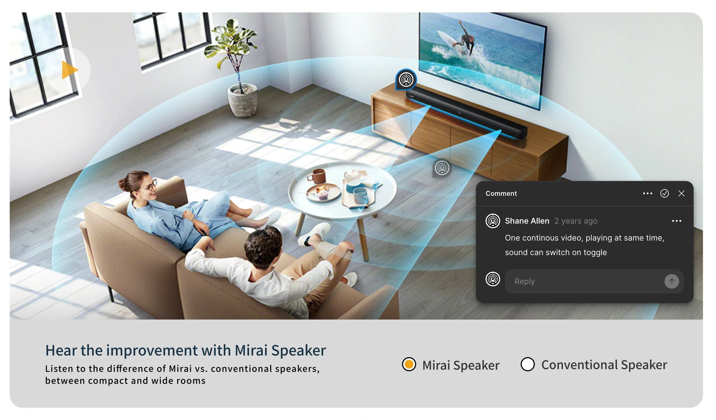 One of the biggest conversion challenges was communicating how Mirai Speaker actually sounds compared to standard TV speakers.
